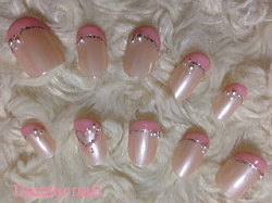 はっきりした濃いめのピンクに白い変形フレンチをデザイン。