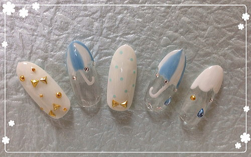 今月は梅雨の雨もたのしんじゃおっ☆ネイルです。
